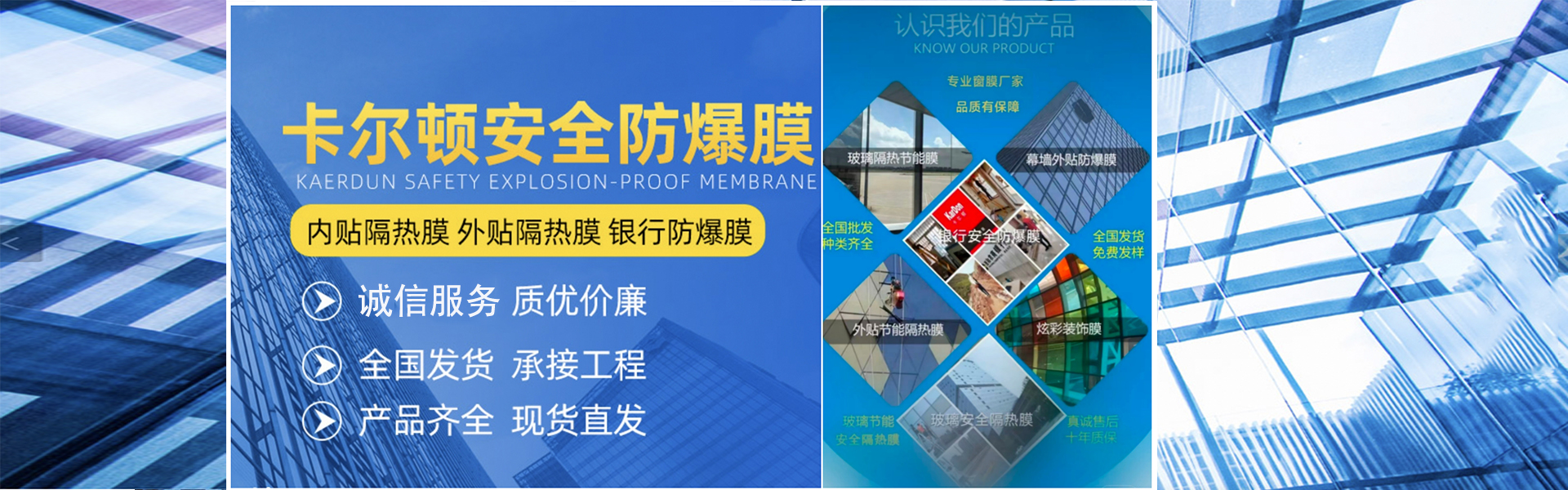 上海自然馨装饰材料有限公司主要从事建筑玻璃用薄膜材料的销售,全国销售批发各种规格与用途的玻璃隔热防爆膜、承接全国500米高以内大小玻璃贴膜工程,服务全国大中小客户。主要产品有玻璃窗膜(隔热节能膜、玻璃安 全膜、银行专用防爆膜、户外用隔热膜、户外用防爆膜等各种玻璃窗膜),特殊颜色产品可以定制,施工各种高难度贴膜工程。